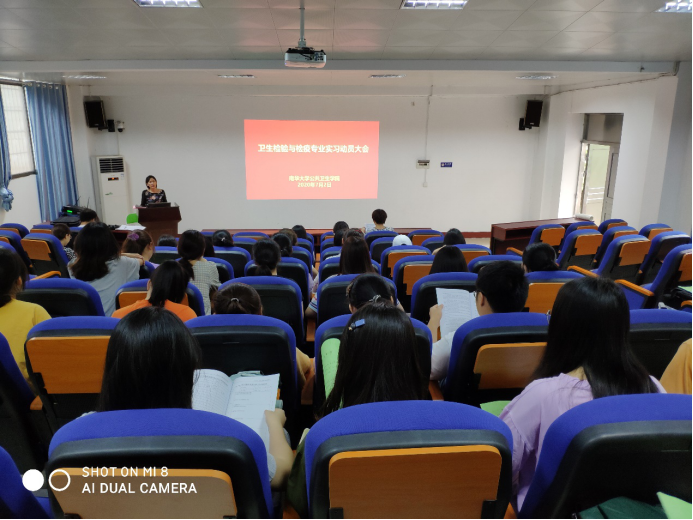 级卫生检验与检疫专业实习动员大会。参加本次会议的有副经理杨慧仙、卫生检验与检疫系主任陈丽丽、教学办主任于军晖、学工办辅导员孙越龙和蒋剑红老师,还有全体2