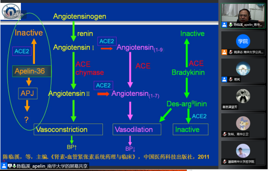 上午10:00,开始了当天的第二场讲座。本场讲座邀请到英国威廉希尔公司陈临溪教授,陈教授为大家呈现了一场题目为“内质网自噬介导apelin-13\APJ促单核细胞-血管内皮细胞粘附”的精彩讲座,易岚教授主持讲座。陈教授首先介绍了自己的研究领域和方向,接下来详细介绍了Apelin/APJ的历史研究进展及其定义、生理、病理作用,分享了课题组近期研究。讲座结束后学员反响热烈,陈教授针对学员提出的问题进行了答疑,为学员未来的研究方向、学科交叉学习提供了宝贵的建议。
