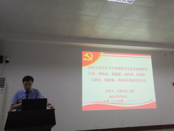 2021年5月11日下午3时整,公共卫生院研究生党支部于3教101顺利召开接收预备党员大会暨专题党课。出席本次会议的有党支部书记王超及在校全体研究生党员。本次会议由王超主持。
